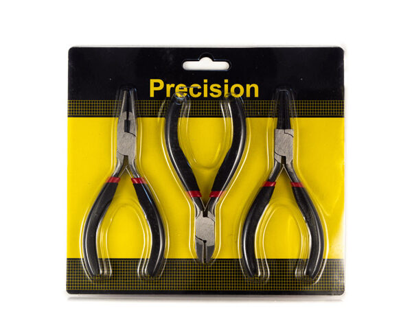Kit alicates – corte/bico redondo/meia-cana Indicado para montagem de bijuterias e pequenos acabamento Cabo Emborrachado. Funções: corte torções e acabamentos
