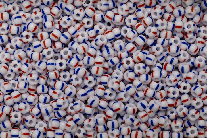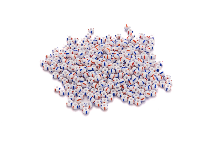 Miçanga Branca Rajada Azul e Vermelha ( cor 03930 ) 5/0 ( 4,6mm )